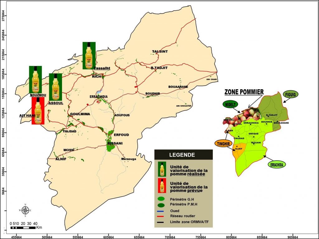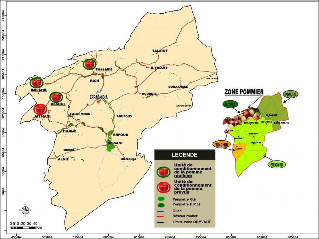 Par ailleurs, compte tenu de l’importance de cette culture et de son rôle socio-économique notamment dans les zones montagneuses, l’ORMVA/TF continu à accorder une importance particulière au développement de cette filière dans le cadre du Plan Maroc Vert. Ainsi, trois projets Pilier II sont en cours d’exécution à savoir :