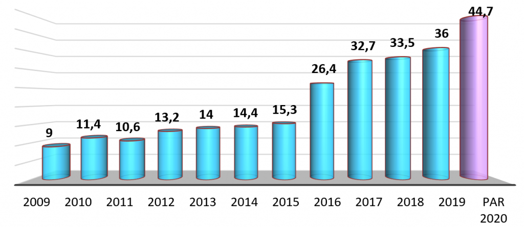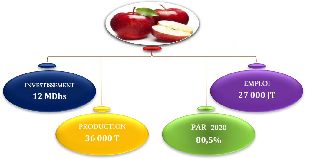 Avec un effectif global du pommier au niveau de la zone de 1.265.000 pieds, la production totale en pommes durant cette campagne est de l’ordre de 36.000 tonnes enregistrant ainsi une légère augmentation de 6% par rapport à la campagne précédente.